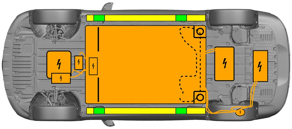 Alle Hochvoltleitungen sind mit einer orangefarbenen Isolierung versehen.