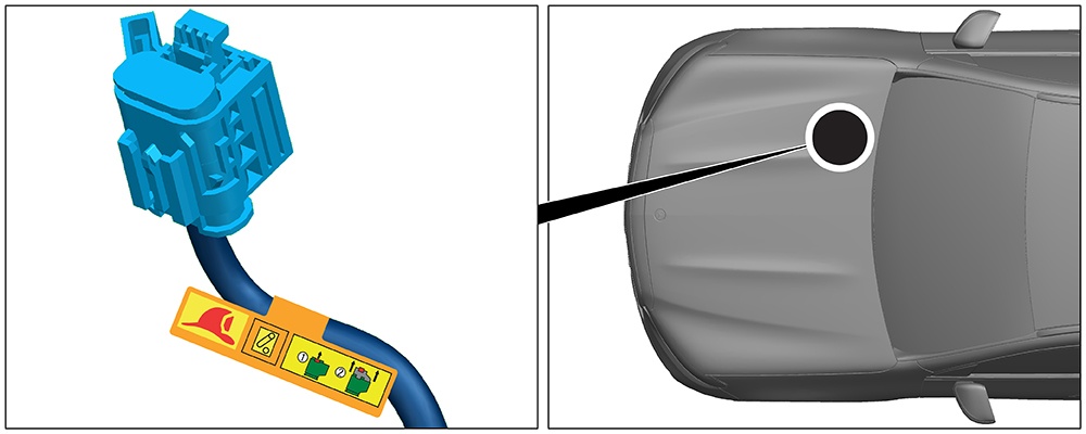 Die Hochvolt-Abschaltvorrichtung befindet sich im Motorraum auf der Beifahrerseite.